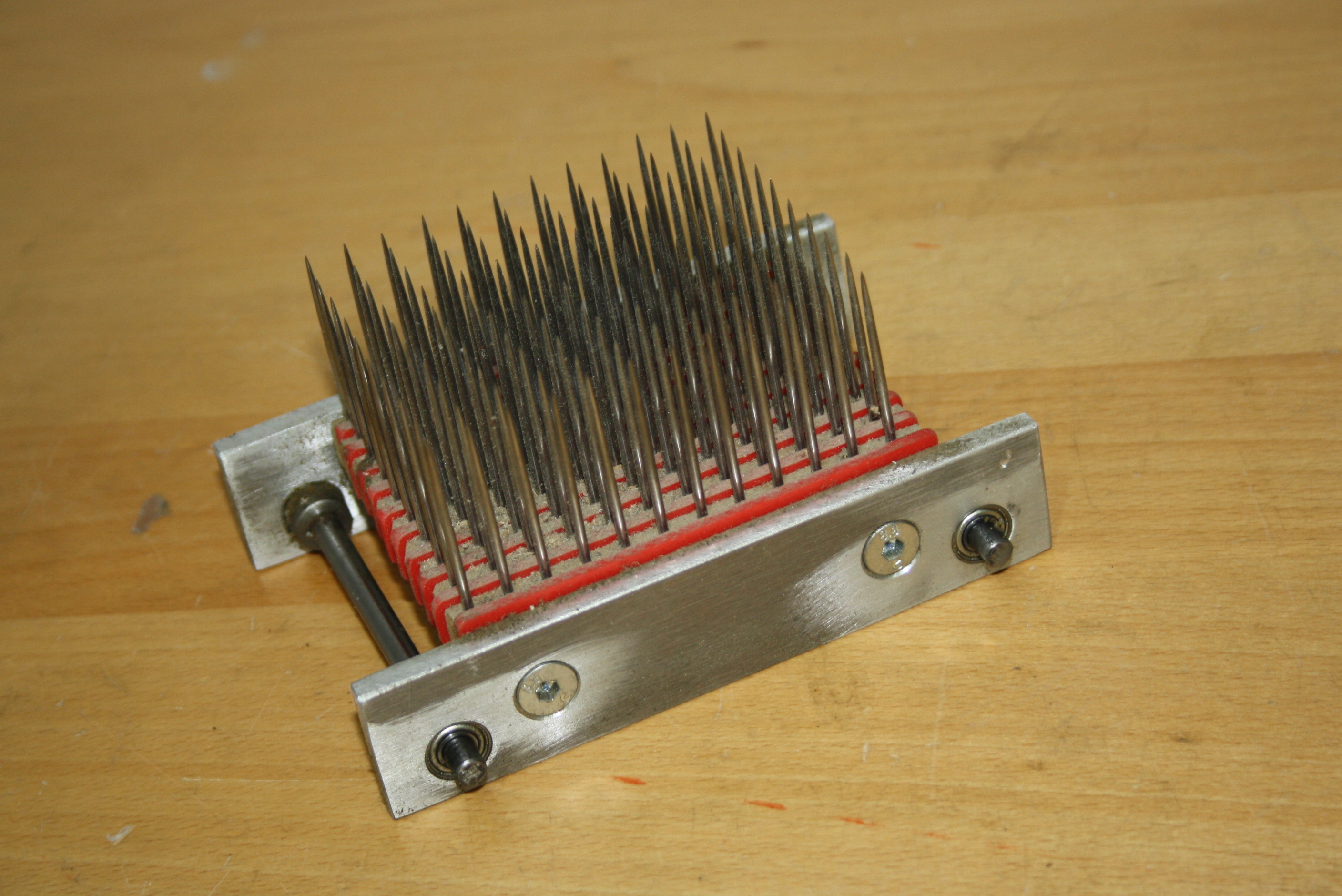 27.11.25 - Nadelschlitten, bestückt mit Stahlnadeln , D 2mm, 50mm lg, 40mm Überstand.